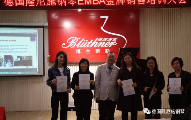 经过严格考核,通过考核的学员们获得了德国博兰斯勒集团德国隆尼施钢琴颁发的基础销售专业知识认证证书!