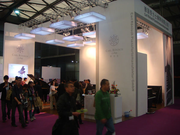 2010年上海世博会成功举办,吸引了全世界的人来到这座美丽的东方城市参观,领略上海这座城市的独特魅力。同样2010年上海国际乐器展在10月12-15号展览中也吸引了全球音乐爱好者和乐器经营者的参观,本次展会前来洽谈的人比往年更多,无论是经营者还是生产厂家都得到了成果,德国CARL RÖNISCH钢琴有限公司(CARL RÖNISCH Pianfortemanufatur GmbH)公司在本次展览会更是取得了骄人的成绩。德国CARL RÖNISCH钢琴有限公司展示了旗下品牌:原装CARL RÖNISCH钢琴和在中国组装的HUPFLED(霍普菲德)钢琴。德国CARL RÖNISCH钢琴是迄今为数不多的在德国继续生产的钢琴厂之一,在中国以CARL RÖNISCH品牌进行销售。此次,德国CARL RÖNISCH钢琴总裁Frank Kattein先生也亲临上海,指导CARL RÖNISCH在中国的市场开拓,CARL RÖNISCH钢琴现已在中国展开全面招商工作,这次展会上已有100多家琴行申请做CARL RÖNISCH钢琴专卖店,展会结束后将对中国销售市场进行考察及布局。