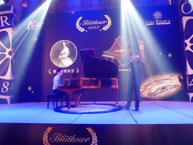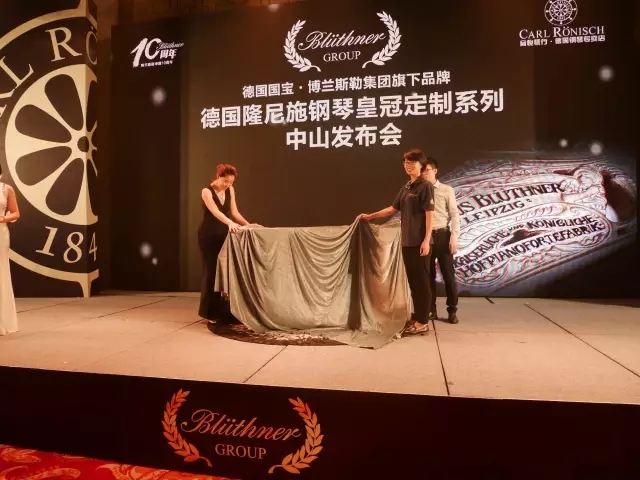 以新生代语言诠释新生代姿态!开场,博兰斯勒钢琴集团中国区代表与隆尼施钢琴中山代理商音悦琴行总经理尹超、毕业于圣彼得堡音乐学院的留俄钢琴演奏家安娜一同为隆尼施特别定制款皇冠进行了揭幕。